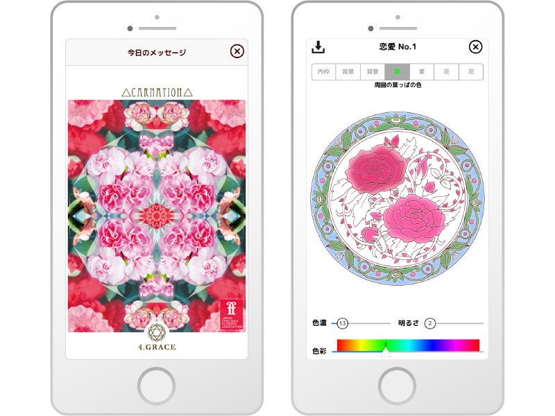 花曼荼羅は「開運を導く花」をシンボルに「運気を導く形」を用いることで天界の光を花曼荼羅という形に投影させたもの。あなたの「手」を通して色を塗る事で作り手の想いがエネルギーとなり、輝きを増します。